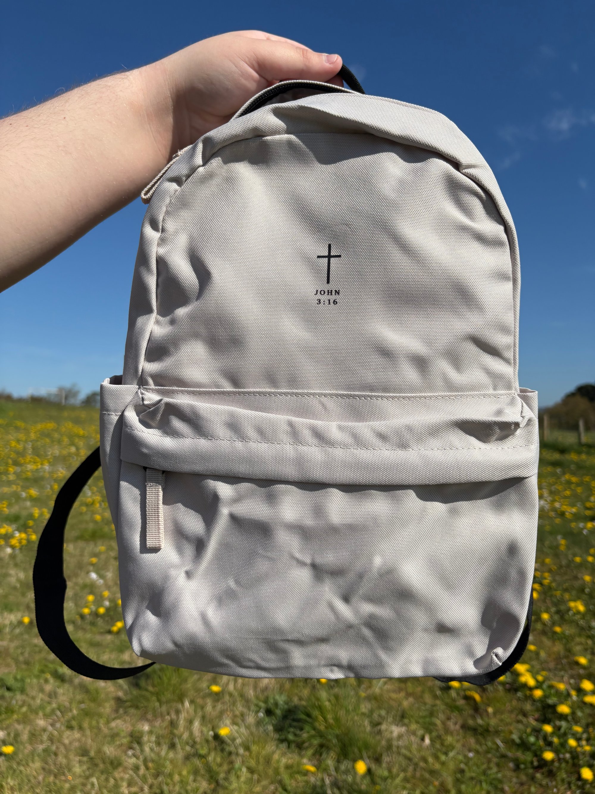 Designed with a clean, centred placement, this John 3:16 backpack is a simple yet powerful way to carry truth with you wherever you go.