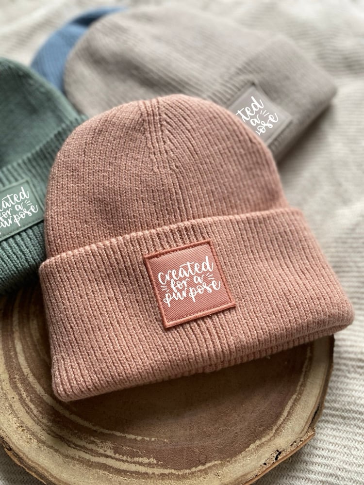 Our “Created for a Purpose” Christian beanie is more than just a cosy essential — it’s a daily reminder of truth. Hand-lettered with the uplifting words Created for a Purpose, this beanie is designed to encourage and inspire as you head into the colder months.
